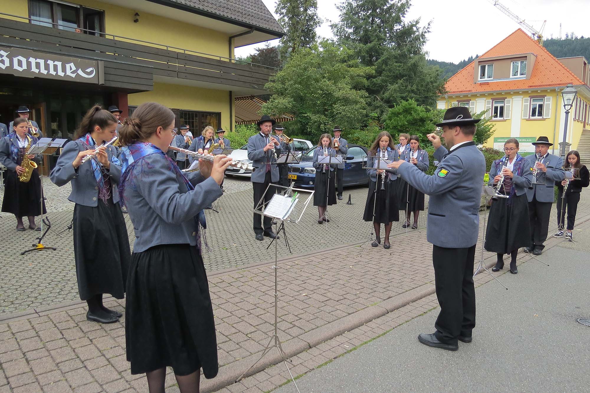 Die Unterentersbacher Musikkapelle unter der Leitung von Markus Vollmer spielte vor dem Hotel „Sonne“ ein bekanntes Kirchenlied.