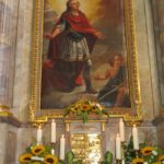 Mit Böllerschüssen frühmorgens um 6 Uhr beginnt traditionell das Patroziniumsfest. Kurz danach weckt der Spielmannszug der Bürgerwehr die Einwohner mit Musik. Zum Festgottesdienst zog Pfarrer Gerner mit einer großen Schar Ministranten und Lektoren in die festlich geschmückte Kirche ein. Weitere Zelebranten waren die Kapuziner Bruder Pirmin, Leonhard Lehmann und Bernhard Oehler.