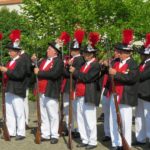 Nach alter Tradition erwiesen die Bürgerwehren dem Pfarrer und den Kapuzinern ihre Reverenz; der Präsentiermarsch und der Ehrensalut auf dem Kirchplatz sind ein beliebtes Ritual am Ende der kirchlichen Feier.