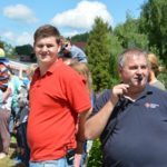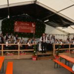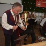 Nach dem Festgottesdienst zog es die Besucher in das Festzelt zum Frühschoppen. Die Musikkapelle Prinzbach-Schönberg unter der Leitung von Dirigent Stefan Griesbaum hatte für die beiden Jubiläumswehren einen bunten Strauß musikalischer Geburtstagsgeschenke mitgebracht. Passend zur Atmosphäre stimmten die Dorfmusikanten Marsch und Polka an und sorgten so zwei Stunden lang für beste Unterhaltung. Auch solistische Einlagen durften dabei nicht fehlen. Unter anderem glänzten bei dem Musikstück »Großvaters Uhr« Klaus Beck am Tenorhorn und Christine Volk an der Piccoloflöte im Dialog als Solisten. Bei der Polka »Feuerfest« sorgte Friedrich Roser am Amboss für den hell klingenden Rhythmus.