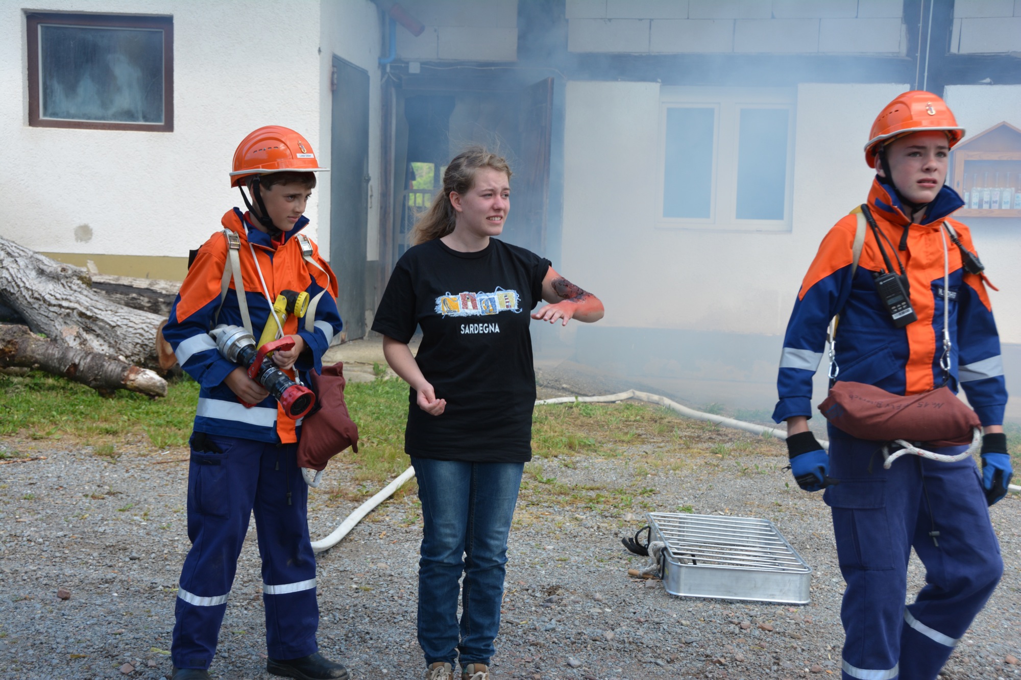 Tim Büdel hatte als Zugführer und Einsatzleiter die Aufgabe, den Einsatz alle Jugendfeuerwehrkräfte zu koordinieren. Vom ersten Einsatzkommando bis hin zum abschließenden »Wasser halt«, hatte er eine große Aufgabe zu bewältigen. Wie bei einem Großbrand üblich, erhielt die Jugendfeuerwehr Biberach von den Jugendwehren aus Zell und Steinach Unterstützung. Insgesamt zeigten 45 Einsatzkräfte, dass sie die Handgriffe für den Ernstfall schon gut gelernt haben. Auch die Jugendrotkreuz-Mitglieder versorgten mit Unterstützung der Erwachsenen DRK-Helfer die vier Verletzten fachgerecht.