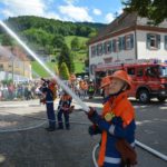 Während im voll besetzten Festzelt die Dorfgemeinschaft mit der Feuerwehr den 75. Geburtstag feierte, waren auf der Dorfwiese die Jugendlichen der Biberacher Feuerwehr unermüdlich im Einsatz. Am Infostand ließen sie Interessierte wissen, wie sie ihre Freizeit sinnvoll gestalten. Viel Spaß bereitete den Kindern das Geschicklichkeitsspritzen mit dem Feuerwehrschlauch.