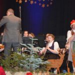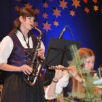 »Kein Schwein ruft mich an, keine Sau interessiert sich für mich« beklagt die Schwarzwaldmarie, denn den Prinzen hat sie noch immer nicht gefunden. Der berühmte Song im Stil der 20er Jahre von Max Raabe wurde vom Schwarzwaldmädle Hans-Peter Fautz, stilsicher im Dirndl und mit rotem Bollenhut, am Gesang intoniert. Mit seiner eindrucksvollen Stimme ergänzte er das Orchester und machte den Song zu einem der Highlights des Abends. Auch der Rocksong über die »Proud Marie«, die »stolze Marie« wurde von der Sängerin Kim Feldhan gemeinsam mit dem Musikverein kraftvoll und rockig intoniert. Die beiden Gesangsstücke wurden mit viel Applaus vom Publikum honoriert.