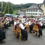 Nach dem eucharistischen Segen zogen die Kirchenbesucher auf den Schulhof um den Klängen des Musikvereins zu lauschen. Mit netten Gesprächen beim Mittagessen und bei Kuchen und Kaffee wurde das Fest abgerundet.
