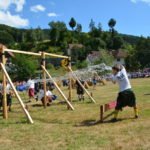 Der Kampf gegen die Schwerkraft begann gleich im ersten Spiel. Zentraler Punkt beim »Wiskeytrail with Zipline« war hier die Wassereimer-Schleuder, mit der das nasse Element über mehrere Meter Entfernung in den Auffangkübel des Mitspielers geschleudert werden musste. Kraft und Geschicklichkeit waren gefordert, damit das Wasser auch sein Ziel erreichen konnte. Ansonsten landete es – Schwerkraft sei Dank – einfach im Gras oder sorgte für eine erfrischende Dusche.