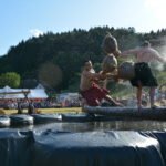 Ein Höhepunkt der Highland-Games ist alljährlich das Sackschlagen über dem Highland-Pool. Beim »Splashing your Rival« zählt am Ende zwar nur die Standfestigkeit der Schottenrock-Kämpfer auf dem klitschigen Baumstamm. Für den Spaß sorgen vor allem aber die spektakulären Abflüge der Männer und erstmals auch von einer Frau.