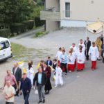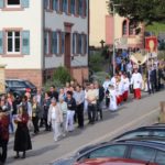 Nach dem Gottesdienst zogen die Gläubigen in einer Prozession in Begleitung der Musik- und Trachtenkapelle Prinzbach-Schönberg e. V. Aus, um das Allerheiligste hinauszutragen.