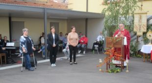 Foto: Thomas LeopoldSeelsorgeleiter und Pfarrer Bonaventura Gerner zelebrierte den feierlichen Festgottesdienst. Das Organisationsteam um Gemeindereferentin Anke Haas, Nicole Fronteiner vom Gemeindeteam und Mesnerin Rosa Obergföll hatte den Gottesdienst vorbereitet und zusammen mit einigen freiwilligen Helfern den Schulhof eigens für den Festgottesdienst feierlich geschmückt und hergerichtet.