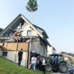Somit war der Wendehammer im Mühlengrund gut besucht und auch auf dem Balkon und entlang des Maibaumes wurde es eng. Die Narrenzunft Biberach stellte ebenfalls einen Narrenbaum und die Arbeitskolleginnen von Carina vom Gasthaus Kreuz in Prinzbach gratulierten auch. Eine schwer zu schätzende Zahl an Störchen und Wäscheleinen ziert mittlerweile das Haus der glücklichen Eltern.