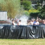 Sechzehn Mannschaften traten bei den Highland-Games in insgesamt sechs Disziplinen gegeneinander an. Neben der Uhr und der Schwerkraft war in diesem Jahr die Sommerhitze ein weiterer Gegner. Besonders gefragt war deshalb am Samstagnachmittag das kühle Nass im Becken, das für das „Splashing your Rival“ aufgebaut war. Nicht nur beim Sackschlagen fanden dort die Akteure eine willkommene Erfrischung.