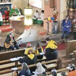 Pfarrer Stern begann den Gottesdienst, so wie es am Anfang immer heißt mit „Im Namen des Vaters, des Sohnes und des heiligen Geistes“. Im Text zum Kyrie ging es darum, dass wir keine Masken brauchen, da Jesus unser wahres Gesicht kennt. Nach dem Glorialied „Ich lobe meinen Gott“ wurde im Tagesgebet vom grauen Alltag und Sorgen vieler Menschen berichtet, wobei man sich ein Leben ohne Fröhlichkeit fast gar nicht vorstellen kann. Anschließend suchte Pfarrer Stern das Gespräch mit den Kindern. Dabei ging es um sieben Leben, welche man sich in Träumen und Vorstellungen wahr machen könnte.