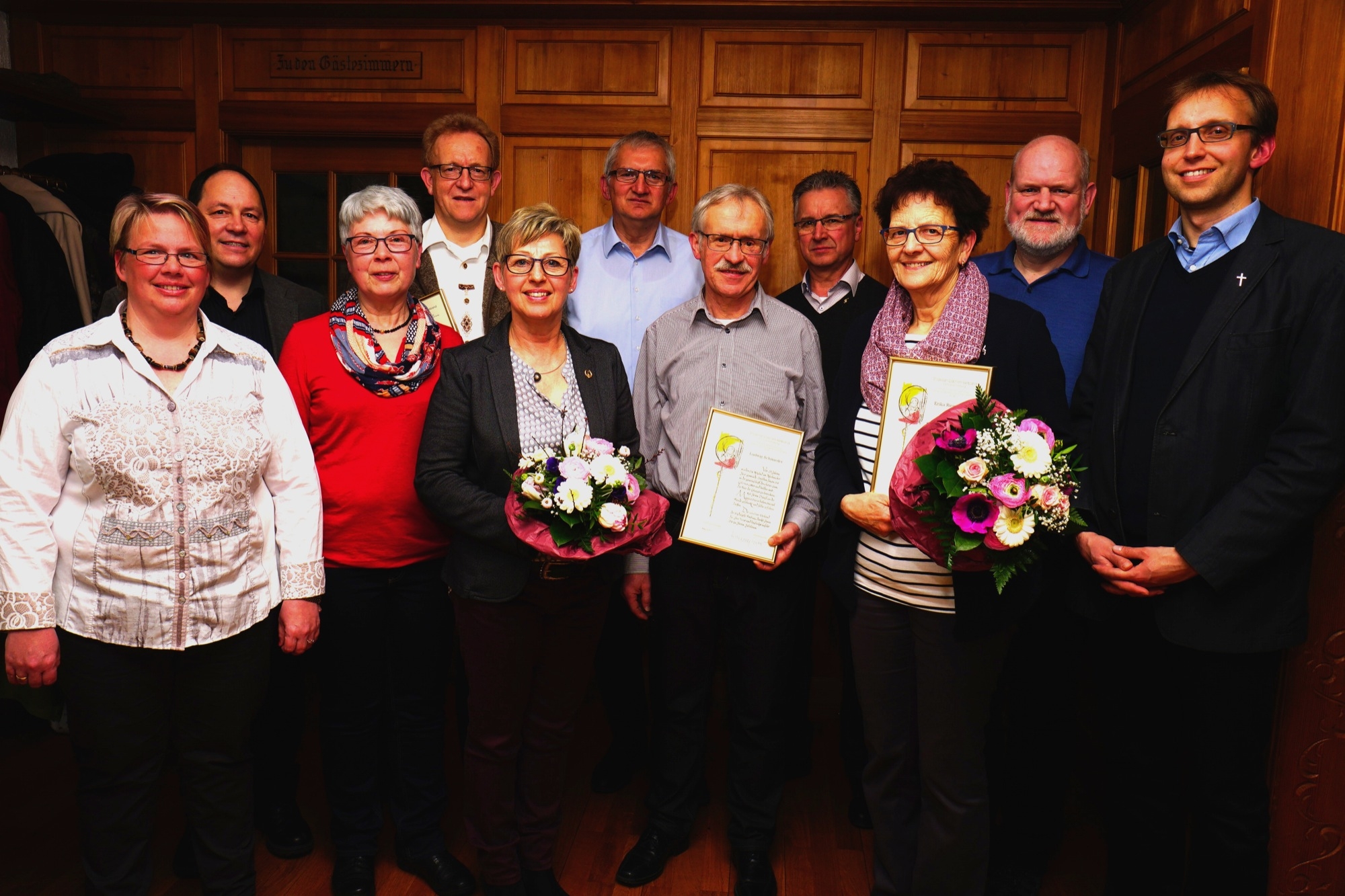 Bei den derzeit 28 aktiven Sängerinnen und Sängern ist der durchschnittliche Probenbesuch auf 82,5 % gestiegen. Agathe Schneider bedankte sich mit einem WSB-Gutschein bei Brunhilde Gissler, Elfriede Jehle, Michaela Große, Bernd Gissler, Ludwig Schmieder, Angelika Gutmann und Marita Echle dafür, dass sie an über 90 Prozent der Proben teilnahmen. Für 25 Jahre aktive Chorzugehörigkeit wurden Erika Rieger, Jürgen Kroker und Ludwig Schmieder geehrt. Für 50 Jahre aktive Chorzugehörigkeit erhielten Bernd Gissler und Wolfgang Gutmann von Erzbischof Stephan Burger einen Brief, Urkunde, Wein und ein Geschenk. Für 20 Jahre Kassenverwaltung bekam Angelika Gutmann einen Blumenstrauß überreicht. Hans-Peter Fautz als Gemeindevertreter hat alle Berichte gehört. Chorleiterin zufrieden, Probenbesuch angestiegen – so war er der Meinung, dass man hier gut aufgehoben sei und bat um Entlastung der Vorstandschaft, die per Handzeichen erteilt wurde. Die Terminpläne wurden verteilt. Erika Rieger informierte über den geplanten Ausflug ins Elsass, den sie momentan vorbereite.