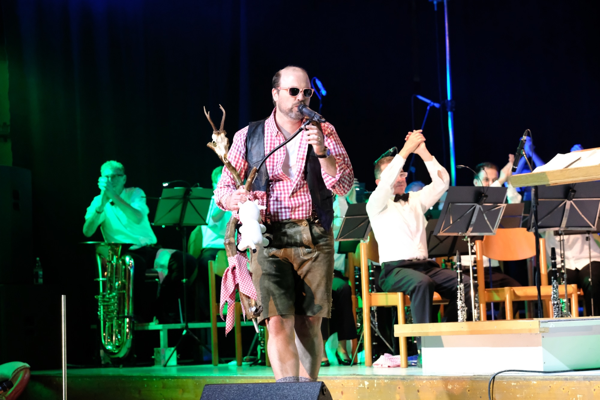 Doch keine Kreuzfahrt – Traumschiff-Fans wissen es genau – ohne Captains Dinner. Die große Torte und viele kleine Kuchen mit Wunderkerzen läuteten einen Überraschungspart ein: Rudi Fautz gab einen verblüffend überzeugenden Andreas Gabalier. Der echte Volks-Rock’n’Roller spielt auf der anstehenden Mini-Kreuzfahrt ebenfalls ein Konzert. In den Augen des Biberacher Blasorchesters eine extrem gute Gelegenheit für einen gemeinsamen Auftritt! Ein entsprechender Aufruf wurde nach dem Konzert bei Facebook gepostet. Nun hoffen alle, dass ihr Ruf den Star auch erreicht.