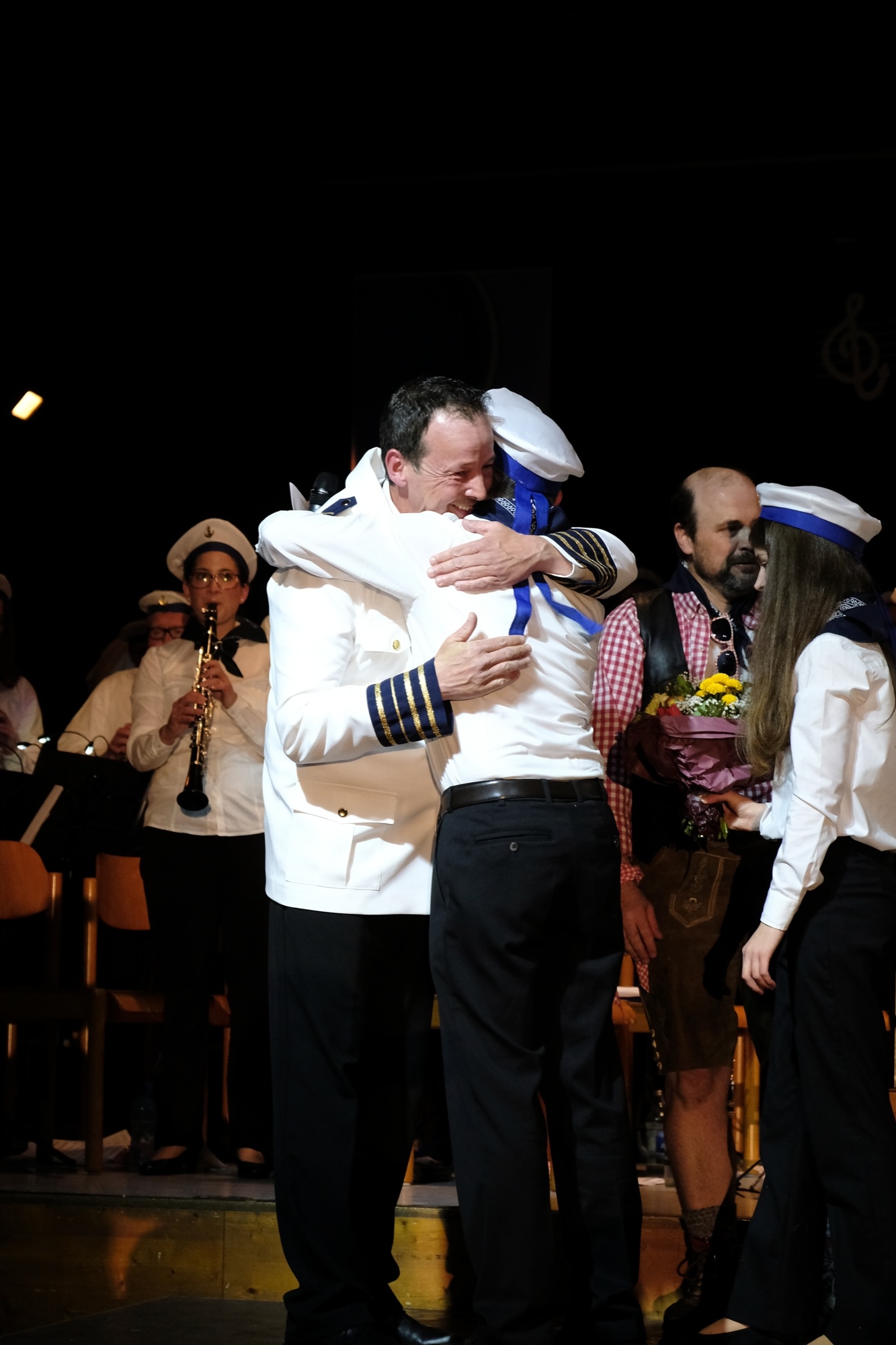 Samira Jilg und Alexander Herde führten anschließend in ihren Rollen als Kreuzfahrt-Passagierin und Gästebetreuer charmant durch den musikalischen Abend des Blasorchesters Biberach, der sich ganz und gar dem Thema »Kreuzfahrt« widmete. Das Motto wurde nicht ohne Grund gewählt, denn ab 30. Mai ist die MSC Sinfonia für vier Nächte das Zuhause für fast alle Musiker und etliche Begleiter. Die Mini-Kreuzfahrt führt ab Venedig die slowenisch-kroatische Küste entlang. Angereist werden muss mit Bus und Anhänger. Die Biberacher werden nämlich zwei Konzerte an Bord geben. Manfred Dürrholder, stellvertretender Vorsitzender plaudert aus dem Nähkästchen und erzählt nach dem Konzert, dass das nicht ganz einfach zu organisieren gewesen sei. Die Reederei sei ziemlich überrascht gewesen, dass das Orchester mit Pauken und Trompeten anrücken will. Nun gibt es die Gelegenheit, zwei Konzerte im großen Saal auf dem Kreuzfahrtschiff zu geben.