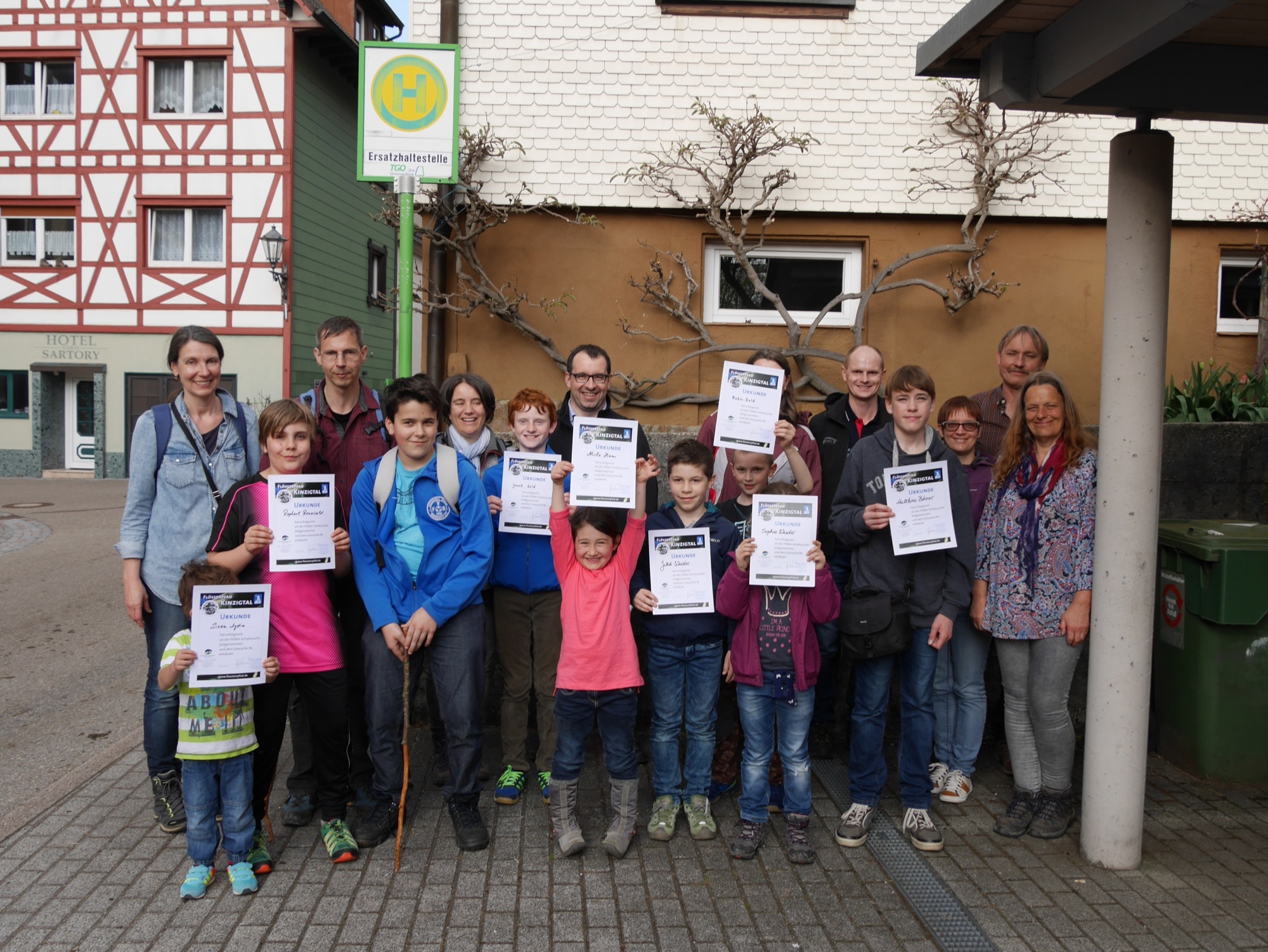 Mit vereinten Kräften konnte jeder Wegpunkt für den Geo-Cache gefunden und alle Aufgaben gelöst werden. So stand am Ende der Wanderung dem Überreichen der Urkunden für die erfolgreiche Teilnahme bei der Flößer-Schatzsuche »Der kleine