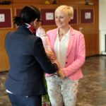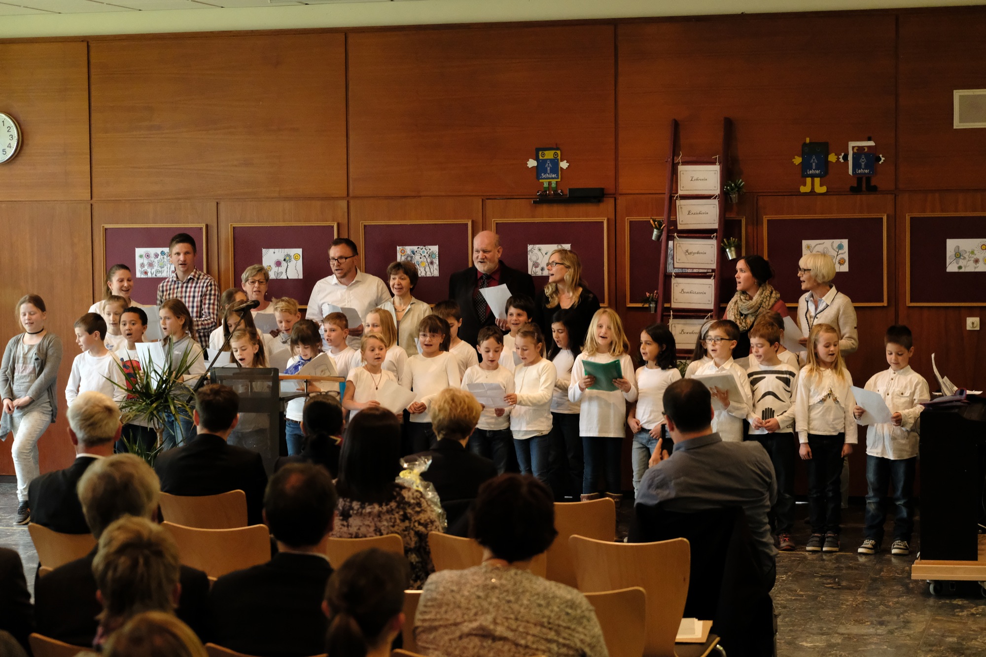 Die Feier zur Amtseinführung mit vielen Gästen machten Schülerinnen, Schüler und Lehrerkollegen und -kolleginnen zu einem unvergesslichen Ereignis. Die neue Rektorin wurde in selbst gedichteten Liedern willkommen geheißen und auch von den Gästen mit einfallsreichen, häufig pinken, Geschenken bedacht.