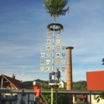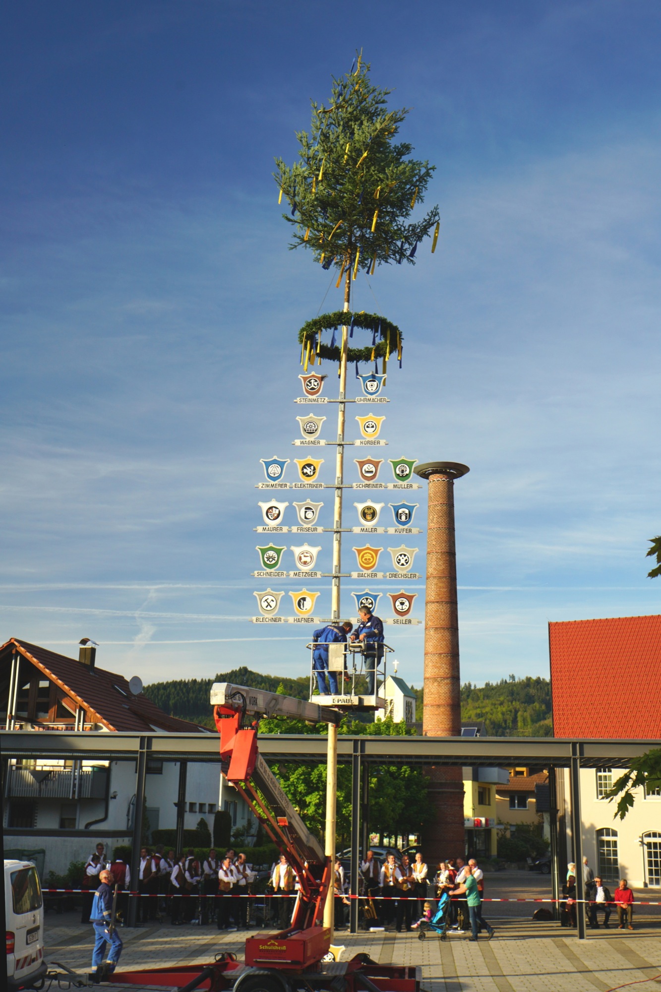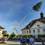 Bei strahlendem Wetter wurde am Vor­abend des 1. Mai der Maibaum in der Biberacher Ortsmitte gestellt.