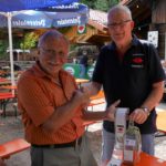 Mit Erstaunen wurde das Bienenwegle beschritten und ein Blick in einen Bienenstock gewagt. Mit Picknick und Wasserrutschen wurde der Besuch abgeschlossen. Dann ging es weiter nach Schapbach, um der Ortsgruppe zum 75-jährigen Jubiläum zu gratulieren. Der Vorstand Manfred Krauss nahm gerne den Wimpel und eine Flasche Hochprozentiges entgegen, welches gemeinsam gleich an Ort und Stelle verkostet wurde.