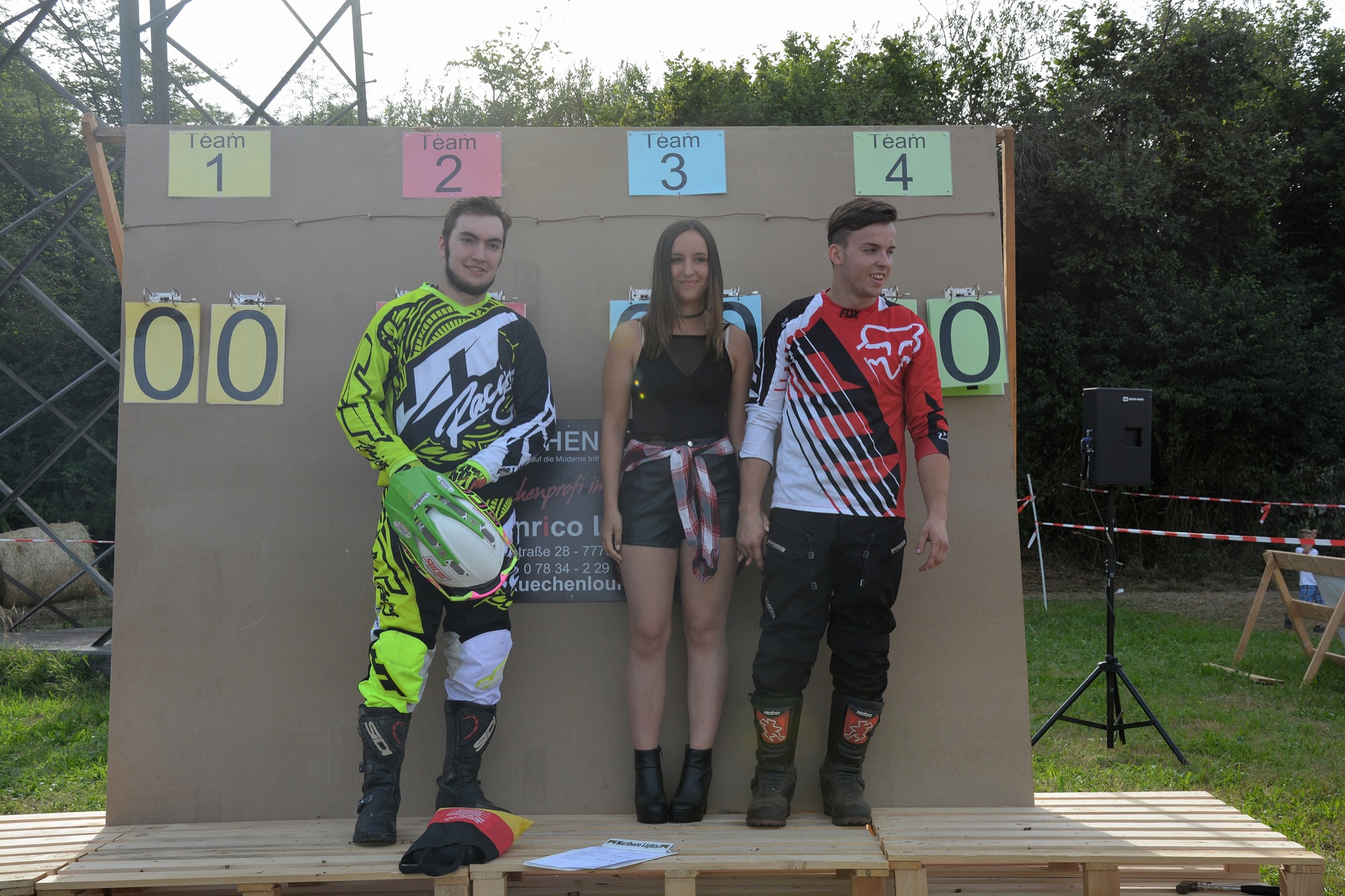 Nach zwei spannenden Halbfinalen erreichten die Gooners 0815, das Acker Circuit Racing Team, die Race Brothers und die Nobbi Bikers das Finale. Hier ging es noch einmal richtig zur Sache und die Fahrer zeigten, dass sie zu Recht im Finale standen. Es wurde in den Kurven ordentlich gedrängelt und keinen Millimeter an die Konkurrenten abgegeben. Dadurch entwickelte sich ein spannendes und hart umkämpftes Rennen, bei dem es ein sehr knappes Ergebnis gab. Durchgesetzt hatte sich schließlich das Team Race Brothers, dicht gefolgt von den Gooners 0815. Den dritten Platz belegte das Acker Circuit Racing Team; den vierten Platz hatten die Nobbi Bikers belegt. Nach dem Finale wurde noch per Zuschauervotum das schönste Boxenluder gekürt. Die Schönheit der Motorradfreunde aus Berghaupten hatte hier den ersten Platz für sich ergattert.