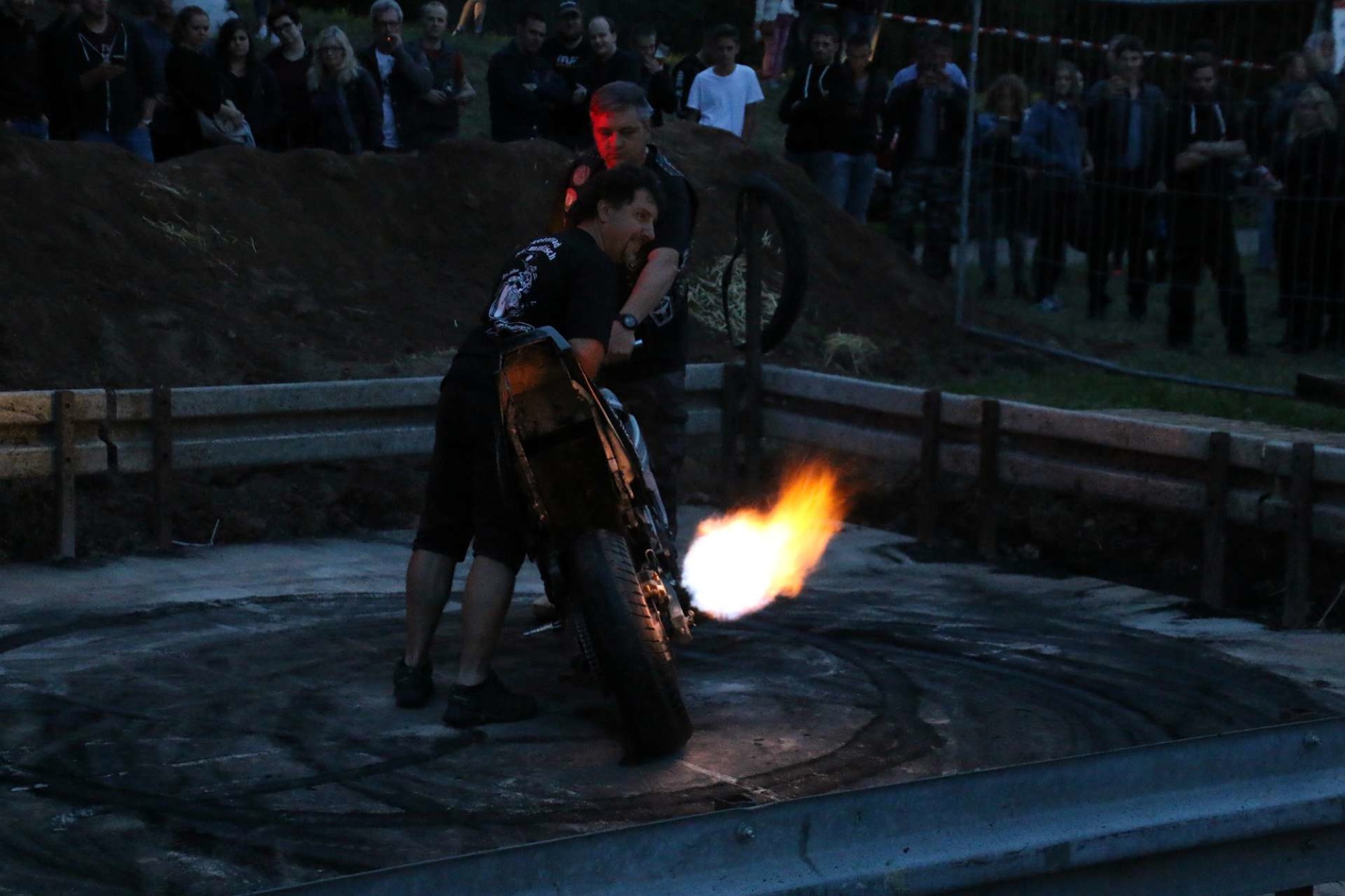 Am Samstagabend rockte die Band »Powerage« nach dem Ghost-Cup die Bühne und ließ es ordentlich im vollen Festzelt des Treffens krachen. Ganz besonders erfreut waren die Kurvengeister, den Pokal für die weiteste Anreise in diesem Jahr an eine Gruppe von Motorradfahrern aus den Ardennen überreichen zu dürfen, denn dies zeigt, wie weitläufig das Treffen mittlerweile bekannt ist. Auch die jährliche Strip-Show, die spektakulären Burnouts und die donnernd kreischende Lautstärkemessung kamen bei den Besuchern gut an. Bis spät in die Nacht wurde am Biberacher Ortsrand ausgelassen getanzt und gefeiert.
