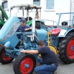 Trotzdem boten die ausgestellten Schlepper und Unimogs ein imposantes Bild. Etliche Festbesucher nutzten gerne die Gelegenheit und bestaunten die rund um Rathaus und Kettererhaus-Museum positionierten historischen Arbeitsmaschinen. Viele schöne und interessante Details waren zu entdecken. Ein beliebtes Event für die Schlepperfans ist auch immer die gemeinsame Ausfahrt. In diesem Jahr führte die kleine Spritztour zum Hof von Organisator und »Winterbur« Wilhelm Schmieder. »Hier wird dann auch gerne das eine oder andere Gläschen Most gekostet« verriet er schmunzelnd. Überhaupt war er den ganzen Tag über kompetenter Ansprechpartner für alle Schlepperfreunde. In so manchem Fachgespräch beeindruckte er mit seinem fundierten Wissen über Geschichte und Technik vieler Fahrzeugtypen.