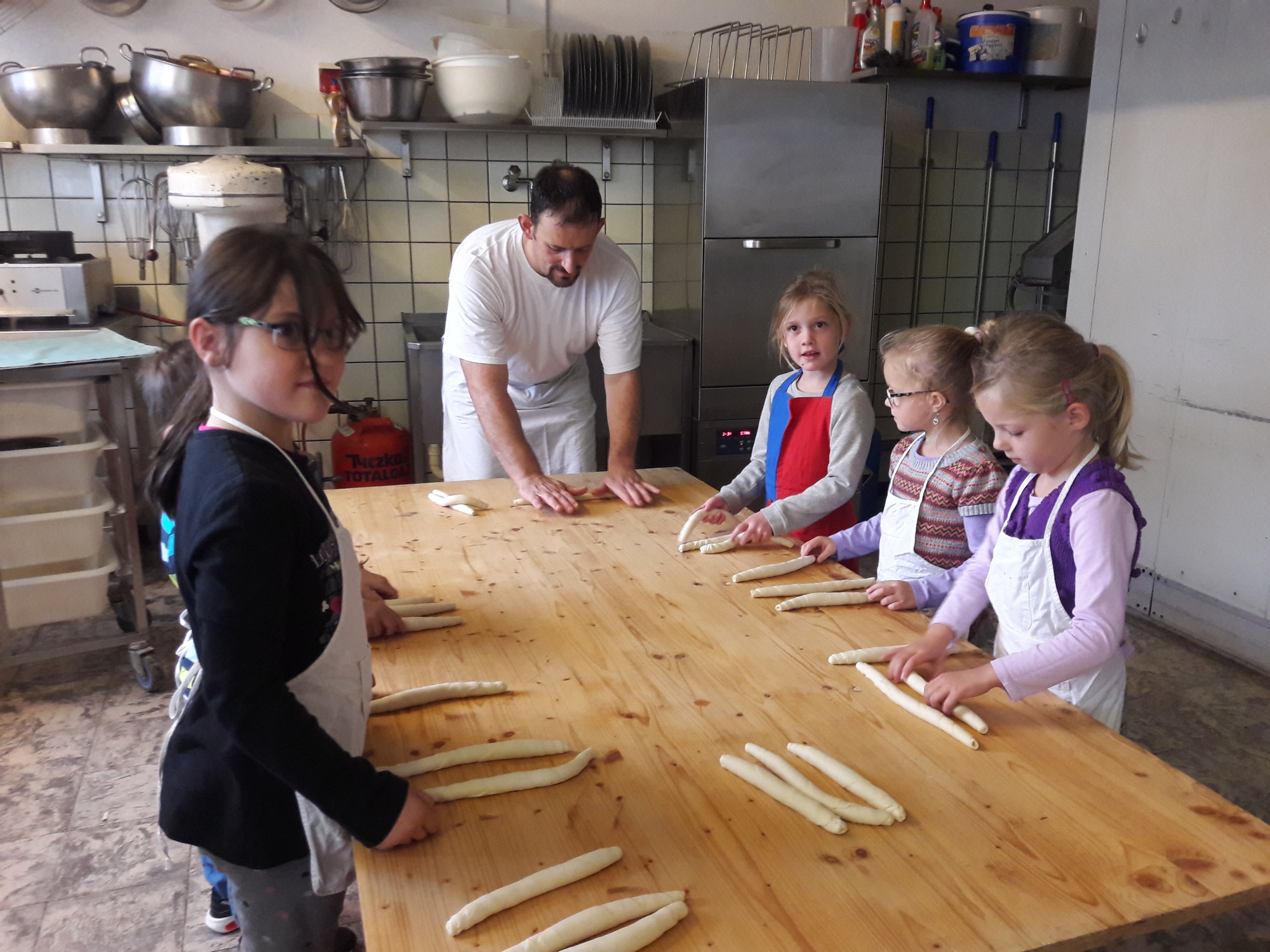 Die jüngste Aktion hat die Großen des Kindergartens dann zur Bäckerei Schwendemann in Biberach geführt. Dort kamen die Kinder aus dem Staunen fast nicht mehr heraus. Zwischen riesigen Teigmaschinen und großen Backöfen führten Joachim Schwendemann und Bäckermeister Franz Josef Roth durch den Alltag des Bäckers. Unter fachkundiger Anleitung entstanden viele leckere Hefe- und Plunderteile, die zu Hause mit großem Stolz verzehrt wurden. Für diesen lebhaften, spannenden und informativen Vormittag bedanken sich die Kinder und Erzieherinnen des Kindergarten St. Barbara. Natürlich sind noch viele weitere Aktionen geplant, zum Beispiel ein Ausflug zur Biberacher Feuerwehr. Wer weiß – vielleicht entscheidet sich ja das ein oder andere Kind Bäcker oder Feuerwehrmann zu werden.