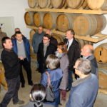 Mit Martin Brosamer wurde eine Streuobstwiese im Kinzigvorland besichtigt. Dabei erläuterte er kulturtechnische Aspekte des Streuobstanbaus und wie rechtliche Vorgaben dabei manchmal im Widerspruch mit der guten fachlichen Praxis stehen. Insgesamt sind ungefähr 1.500 Bäume in seinem Besitz, von denen er heuer aufgrund der Witterung statt 60 Tonnen wie sonst in diesem Jahr nur 8 Tonnen Obst geerntet hat. Auch er hatte Zahlen parat: Der Anteil von Obstbrand am Gesamtmarkt der Spirituosen beträgt gerade einmal zwei Prozent. Er sprach zudem ein weiteres Problemfeld an: Vermarktet der Landwirt nicht selbst, sondern über den Einzelhandel, werden häufig Zertifizierungen verlangt, die »richtig viel Geld kosten«. Für die Gruppe gab es zudem einen Blick ins beeindruckende Whiskey-Lager. »Brosamer ist ein Aushängeschild aus Biberach«, so Bürgermeisterin Daniela Paletta.