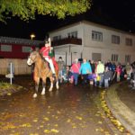 Nach dem Martins-Spiel bildeten alle kleinen Laternenträger mit den Kindergartenteams und Eltern, dem Gemeindeteam der Kirchengemeinde St. Blasius und dem Blasorchester einen Zug. An der Spitze ritt Franz Willmann als St Martin.