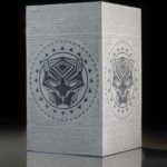 Optisch wie haptisch dem ursprünglichen Look des Filmschauplatzes »Wakanda« angepasst, wurde die Verpackung robust und wertig aus einer Festkartonage, hochveredelt mit 3D-UV-Lack auf Naturkarton, hergestellt. Die Verpackung ist in allen Details optisch wie funktional ein Genuss und natürlich mehr als ausgereift. Als Zugabe ist die Replik des Armbands mit den aus dem Film bekannten »Kimoyo-Perlen« passend in einer hochveredelten Festkartonage mit Lasercut-Schaumstoffeinlage verpackt.