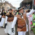 Angeführt wurde der prächtige Narrensprung von der Biberacher Jubiläumszunft. Vielfach riefen Oberzunftmeister Helmut Büdel und seine Narrenräte den Besuchern am Straßenrand und den Gästen auf der Ehrentribüne eine freudiges »Narri! Narro!« zu. Die Reiherhexen stempelten in ihrem rollenden Bett so manchen Narrenbauch. Die Biber und die Bergwerksgeister verteilten gerne Süßes für die Narren am Straßenrand. Derweil kommentierten Richard Kammerer sowie Herbert Krauß und Hartmut Schlieter den zweistündigen Fasentumzug.