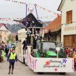 Sehenswert waren auch die teils spektakulären Umzugswagen. Im Sturzflug landeten die Strohbacher Wagenbauer in ihrem Doppeldecker in Biberach. Die Fußbacher Narren hatten den Hauptbahn-hof von Lummerland samt Dampflokomotive inszeniert. Mächtig und mystisch thronte das Geisterschloss von Goldring Gengenbach über den Narren.