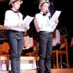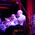 Groß war deshalb der Kontrast zum nächsten Stück, »Spiel mir das Lied vom Tod«. Rudi Fauser als einsamer Cowboy spielte mit der Mundharmonika das kleinste Blasinstrument des Abends mit soviel Gefühl, dass es durch Mark und Bein ging. Effektvoll auch hier die Beleuchtung, die die Bühne in blutrotes Licht tauchte. Doch der schöne Schauder sollte nicht allzu lange dauern. Schon ein paar Minuten später kam mit dem »Babysitter Boogie« eine schwungvolle und fröhliche Nummer auf die Bühne. Unterstützt wurde das Orchester von Alexander Herde, der sang, und Samira Jilg sowie Annette Braun, die schauspielerisch und tänzerisch großes Entertainment boten.