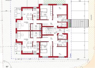 Der dritte und letzte Bauabschnitt ist das 4-Familien-Wohnhaus, das zweistöckig gebaut wird. Dieses Gebäude wird nach Fertigstellung der ersten beiden Häuser in Angriff genommen. Die vier Eigentumswohnungen haben jeweils eine Wohnfläche von rund 100 Quadratmetern. Ein Aufzug ist in diesem kleineren Gebäude nicht vorgesehen. Ansonsten verfügen auch diese vier Wohneinheiten über allen Komfort, der das Wohnen am alten Sportplatz künftig auszeichnen wird.