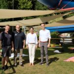 Die Schattenplätze unter der Rutsche kommen gut an. Kein Wunder, hat die DLRG doch traditionell das Ohr nah an den Badegästen und erfährt schnell von den Wünschen der Besucher. »Vor allem junge Familien hatten sich immer wieder einen schattigen Platz nahe der Rutsche, mit kurzen Wegen und auf ebenem Grund gewünscht«, sagt der Vorsitzende der DLRG Biberach Jonas Breig. Ein Wunsch, der nun Wirklichkeit wurde. Dank der großzügigen Spenden zum 50-jährigen DLRG-Jubiläum, dank der Menschen, die sich für das Spendenschwimmen begeistert hatten und nicht zuletzt weil auch die Gemeinde gleich mitgezogen hat. Bürgermeisterin Daniela Paletta und Betriebsleiter Dirk Weise waren sofort Feuer und Flamme für die Idee. Die DLRG übernahm die Kosten in Höhe von 6.200 Euro für die Sonnensegel, der Bauhof hatte über den Winter die baulichen Vorbereitungen getroffen, und als die maßangefertigten Segel vor Kurzem geliefert wurden, wurden sie sogleich montiert.