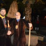 Große Freude herschte bei den Bibern, die mit Ronja Großmann, Selina Krause, Manuela Himmelsbach, Klara Oehler, Vanessa Kahn, Lukas Gerlach und Niklas Riehle sieben neue Hästräger in ihren Reihen aufnehmen konnten. Nach dem traditionellen Durchbeißen eines mächtigen (Laugen)-Baumstammes folgte die symbolische Taufe mit der Schöpfkelle am Narrenbrunnen. Hatte man gehofft durch die hohe Anzahl der neuen Biber weniger Nass abzubekommen, wurden die Jungbiber schnell eines besseren belehrt. »Der Biber ist ein Wassertier, drum sind wir alle hier!« begrüßte Oberbiber Andreas Schmider die neuen Hästräger, während Täufer Ralf Volk die riesige Schöpfkelle kreisen ließ und die jungen Biber mit reichlich Wasser gegen so manche Narrensünde impfte.
