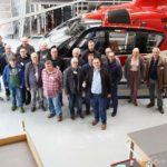 Nach einem gut einstündigen Rundgang durch die Werft, bei der vor allem der Triebwerksbereich das Interesse der Besuchergruppe anzog, konnte noch ein Gemeinschaftsbild vor einem der Rettungshubschrauber gemacht werden. Die Teilnehmer waren begeistert vom Rundgang und vor allem davon, dass man auch wirklich »mittendrin« war im Geschehen. Nicht nur aus weiter Entfernung, sondern nah am Objekt.