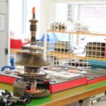 Ein Hubschrauber hat in der Regel zwei Turbinen-Triebwerke. Der Rotor dreht sich dabei mit sagenhaften 50.000 Umdrehungen/Minute. Da dies aber für den Rotor zu schnell ist, wird über ein Reduktionsgetriebe eine Drehzahl von 420 Umdrehungen/Minute an den Rotor und die Rotorblätter weitergegeben. Die Drehzahl ist übrigens konstant – Flugbewegungen werden ausschließlich durch die Veränderung des Anstellwinkels der Rotorblätter durchgeführt. Die Turbine schaufelt 2,5 Kubikmeter Luft pro Sekunde in das Triebwerk. Das ist auch für die Kühlung wichtig: die Abgase müssen von über 1.400 Grad auf 300 Grad herunter gekühlt werden. Für eine komplette Wartung wird die gesamte Turbine zerlegt – der Mitarbeiter hat dann über 2.500 Einzelteile auf seinem Arbeitstisch, die gereinigt, geprüft und gegebenenfalls nach Wartungsplan ausgetauscht werden müssen. Jedes einzelne Teil hat eine eigene Seriennummer und bei der erneuten Montage wird jede Seriennummer in ein Protokoll eingetragen. Ein zweiter Mann kontrolliert nach jedem Arbeitsschritt die Arbeit des Monteurs. Jeder Arbeitsschritt wird dann von beiden per Stempel in einem umfangreichen Dokumentationsprotokoll eingetragen. So ist jederzeit klar, wer welches Bauteil wann und in welchem Triebwerk ein- oder ausgebaut hat.
