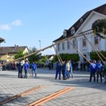 Bei strahlendem Sonnenschein konnte Bürgermeisterin Daniela Paletta zahlreiche Gäste begrüßen. Perfekte Bedingungen also für das Aufstellen des Baumes. Wie Recherchen von Gerhard Matt und Wilhelm Schmieder ergaben, wurde der erste Maibaum in Biberach bereits 1966 gestellt, informierte das Gemeindeoberhaupt. Seit 1984 wird der Baum, der in diesem Jahr aus dem Wald hinter dem Schwimmbad stammt, gemeinsam vom Bauhof und dem FV Biberach mit reiner Muskelkraft unter Zurhilfenahme von langen Stangen aufgerichtet. In diesem Jahr war die logistische Meisterleistung unter der Regie von Bauhofmitarbeiter Josef Schmidt in rund 20 Minuten vollendet.