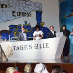 Das eigene Fell – sprich Schwarte – wollten die drei Schweinchen bei der »Treibjagd« retten. Das Fleischimperium vom »Geiger-Metzger« vertrieb sie von der heimischen Sau-Weide in den rettenden »Orient-Express« . Auf der närrischen Flucht war die Biberacher »Neubürger-Broschüre« mit ihren schier märchenhaften Bonus-Angeboten willkommener Lesestoff. Während die DJK Neubürgern beispielsweise den Stadion-Eintritt inklusive einer Wurst spendiert, gibt es beim FVB Bier und schöne Tore – letztere allerdings nur von den Gastvereinen.