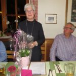 Auch die Vorsitzende des Chores, Agathe Schneider, wünschte Sonja Große alles Gute für die Zukunft und überreichte ihr als Abschiedsgeschenk die Anstecknadel des Chores, ein Präsent und Blumen.