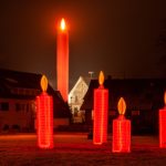 Das Team um Betriebshofleiter Dirk Weise hat wieder ganze Arbeit geleistet. Der Rietsche-Kamin wurde zur überdimensionalen Weihnachtskerze umgestaltet, die den Ort überstrahlt. Auch die vielen kleinen Kerzen an den Straßenleuchten wurden installiert, so dass das Kerzendorf überall präsent ist. Selbst oben von der Konradskapelle herab grüßt eine der vielen Weihnachtskerzen. Einzig der Adventskranz beim Kreisverkehr konnte in diesem Jahr wegen der Windkraft-Schwertransporte nicht installiert werden.
