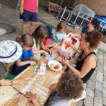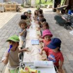 Wie macht man eigentlich Erdbeer-Eis? Die Kinder vom Naturkindergarten wissen es. Man braucht frische Erdbeeren, Sahne, Joghurt und Zucker. Die frischen Erdbeeren für die Eisproduktion kamen vom Erdbeerfeld des benachbarten Schmiederhofs. Die Kinder schnitten sie klein und pürierten die Früchte. Damit echtes Milcheis daraus werden konnte, vermischten sie das Püree mit Sahne und Joghurt. Auch ein bisschen Zucker kam dazu. Viel war nicht nötig, denn die Erdbeeren waren von Haus aus zuckersüss. Die rote Masse wurde in zwei Eismaschinen verteilt und dann kam der schwierigs te Teil: Die Kinder mussten abwarten, bis die Eismaschine ihr Werk vollbracht hatte. Das fertige Eis wurde bis auf den letzten Klecks von den Kindern und Erzieherinnen genüsslich vertilgt.