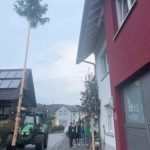 Selbstverständlich also, dass die aktiven Spieler der DJK Prinzbach ihrem Mannschaftskameraden und ihrer Vorstandskollegin einen stolzen Maibaum stellten. Mit seinen handgestoppten 13,4 Meter Länge waren moderne Technik und erfahrene Handwerker notwendig, um den Baum aufzustellen.