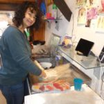 Die Wolle von vorzugsweise deutschen oder auch österreichischen Bergschafen verwendet Gwendolyn Hättig heutzutage dazu. Sie ersteht sie (ausschließlich mit Wasser und Seife) gewaschen sowie kardiert – sprich sorgsam gekämmt und daher aus einzelnen Haaren bestehend -, naturbelassen sowie gefärbt. Der Arbeitsplatz: Das Waschbecken samt Ablage im Werkelraum.