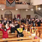Nach weiteren Gebetstexten und Liedern um Lebensfreude folgte das Hochgebet, das Vater unser, der Friedensgruß und die Kommunion. Mit dem Schlussgebet, in dem es nochmals um Feste feiern und Freude schenken ging, neigte der Gottesdienst sich dem Ende zu. Bevor Pfarrer Gerner den Segen sprach, dankte er allen Mitwirkenden und dem Liturgiekreis für diesen schönen Fasnachtsgottesdienst, welchem ein Applaus der Gottesdienstbesucher folgte. Beim Schlusslied »Ein bisschen Spaß muss sein« gingen dann beim Refrain die Hände zum Himmel und es wurde nochmals zusammen im Takt geklatscht, damit sich keiner alleine fühlt.