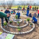 Danach wurde in den Waben-Beeten gehackt, gerecht, gegraben, gepflanzt, gesät, gewässert, gedüngt und zum Teil mit einem vor Frost schützenden Vlies abgedeckt. Somit wird sichergestellt, dass die bis zu 300.000 Bienen des Bee-Mobiles als auch umherfliegende Wildbienen, Hummeln und Schmetterlinge, Nahrung in Form von Pollen und Nektar finden können.