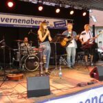 Immerhin ist es diesmal nicht so heiß. Kurz vor 20 Uhr feiern bereits rund 800 Menschen auf dem Platz, zu späterer Stunde werden es um die 1000 sein. Unter bunten Lichtern genießen sie die Musik der Black Forest Acoustic Company. Die fünfköpfige ehemalige Rockband sorgt für beste Laune, mit Stücken von unter anderem Steve Miller, Jonny Cash, Westernhagen, CCR, Rihanna, 4 non Blondes, Rolling Stones.