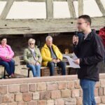 Bei perfekten Wetterbedingungen konnte Bürgermeister Jonas Breig rund 100 Besucher zu dem traditionellen Maibaumstellen begrüßen. Mit einer kurzen Rede ging er auf den alten Brauch des Maibaumstellens ein und bereitete so auf den bevorstehenden Hauptakt vor. Bereits in vorchristlicher Zeit tanzten die Menschen um ausgesuchte Bäume und veranstalteten Feiern. Die Bäume waren Symbol des wiederkehrenden Frühlings und der Fruchtbarkeit. Im Christentum war dieser Brauch als heidnischer Kult jedoch verboten. Im 16. Jahrhundert entwickelte sich dann die Tradition einen geschälten Baum mit Kränzen und Bändern zu schmücken und zum 1. Mai aufzustellen. Dies sollte Glück und Segen wie auch Wachstum bringen. Erneute Versuche der weltlichen und kirchlichen Obrigkeit, diese Tradition zu unterbinden, scheiterten im 18. Jahrhundert.