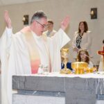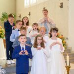 In diesem Jahr gab es keine Pandemie bedingten Einschränkungen, wie in den letzten beiden Jahren, so dass alle Kinder gemeinsam die Erstkommunion feiern konnten. Sie wurden um 10:00 Uhr aus der Arche Noah von Pfarrer Bonaventura Gerner mit drei Ministranten abgeholt und unter Begleitung des Vorbereitungsteams in die Kirche geleitet. Das Blasorchester Biberach umrahmte musikalisch den feierlichen Einzug.
