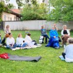 Zum ersten Mal fand am vergangenen Dienstag eine Vorlesestunde der Bücherei Biberach für Erwachsene statt. Rund fünfzehn Zuhörer*innen folgten der Einladung und stellten Stühle im Garten der Arche Noah auf, nachdem das Wetter nach reichlichen Regenschauern am Vormittag doch noch etwas Sommerabendstimmung aufkommen ließ. Auch Picknickdecken wurden ausgebreitet, um es sich darauf bequem zu machen. Ein Glas Wein und